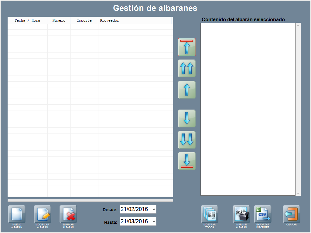 Gestiona el almacén y el stock de productos y materias primas gracias al registro de albaranes y comprar a proveedores. Gestiona productos de compra y escandallos, menús, productos combinados, suplementos o varios precios por productos y controla las cantidades consumidas avisándote cuando haya stock crítico de productos.