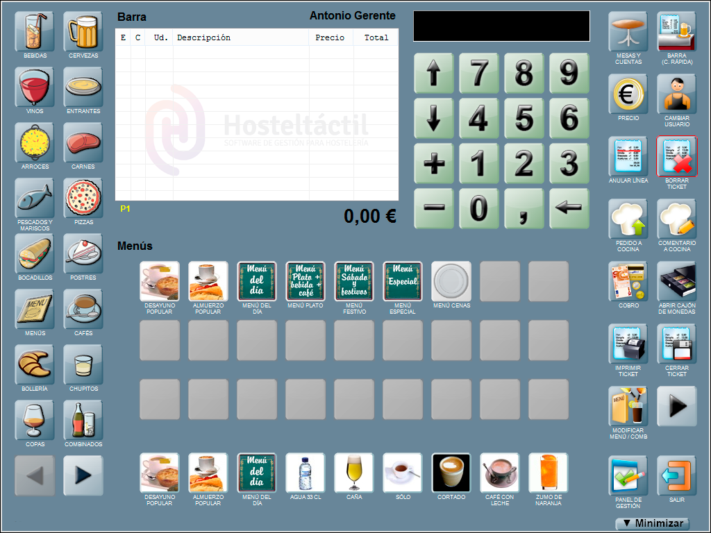 El software de gestión Hosteltáctil, al cual nuestros clientes pueden acceder a través de un TPV Táctil. Este es el elemento central de nuestro sistema de gestión y te permite con un solo dedo tener un control completo de todas las áreas de trabajo de tu negocio: desde la zona de barra, la actividad en la sala, conexión directa a cocina sin necesidad de traslados o el control de stock de tu almacén.